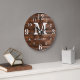 Monogrammed wall clock with a dark brown wood texture background. Personalise the family clock with your family name and monogram initial letter.