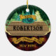 Personalise this ornament with your own family name or that of a friend, for a keepsake ornament or housewarming gift. The rustic wood design features plaid and pine trees, for a classic country woodland ornament.
