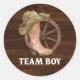 Rustic Wood Floral Boots or Bows Team Boy Sticker, Rustic Wood Floral Boots or Bows Gender Reveal Sticker