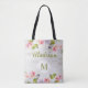 Rustic Wood Floral Bridesmaid Trendy Monogram Tote Bag