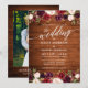 Rustic Wood, Modern Calligraphy Script, Watercolor Burgundy Marsala Floral Wedding Invitation with Burgundy and Pink Roses - Photo Back