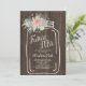 Rustic wood floral mason jar script bridal shower invitation