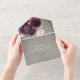 This Grey Rustic Wedding invitations features rich dark violet and blush pink roses on the grey wooden background with shining string lights. Perfect for a rustic wedding. All in one invitation include the wedding info and RSVP postcard that your guests off and and send. Enjoy it!