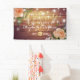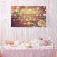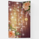 Wedding Banner Templates - Elegant Gold Script with Peach White Roses Floral and String Lights on Rustic Wood Background.
