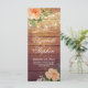 Wedding Program Rack Cards Templates - Elegant Script with Peach White Roses Floral and String Lights on Rustic Wood Background.