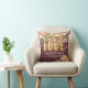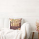 Wedding Shower Throw Pillow Templates - Elegant Gold Script with Peach White Roses Floral and String Lights on Rustic Wood Background.