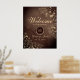 Welcome guests to your vintage country wedding with our elegant rustic wood welcome poster. Adorned with intricate gilded boho gold floral lace and personalised with the monogram of the bride and groom, it sets the tone for a charming celebration amidst nature's beauty.