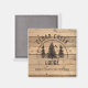 Promotional magnet featuring a rustic wood plank and scenic forest trees design personalised with your custom text. Ideal for a family cabin, lake house, rustic lodge or nature retreat and vacation home rental property. ASSISTANCE: For help with design modification or personalisation, colour change, resizing, transferring the design to another product or if you would like coordinating items, contact the designer BEFORE ORDERING via the Zazzle Chat MESSAGE tab below or email makeitaboutyoustore@gmail.com.