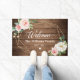 Rustic Wood Geometric Frame Blush Flowers Welcome Doormat
