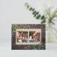This holiday postcard is a great way to send a handwritten message along with your photo card. This design features a beautiful, dark rustic wooden background with a delicate snowflake overlay. In the top-left and bottom-right corners are some hand-painted festive sprigs with pine cones and berries. In the center of the card are 2 square photos with delicate gold foil borders with "we wish you a Merry Christmas" above and "with love from", and then your family name, below the photos.
