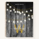 Rustic Wood Gold String Lights Monogram Recipe Notebook