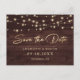 Rustic Wood Gold String Lights Save The Date Announcement Postcard