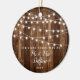 Rustic Wood Grain Fairy Lights Newlywed Mr & Mrs Ceramic Ornament with beautiful mini string lights accent and pretty script font. The perfect first Christmas married gifts for newlywed traditions. Personalise with names by clicking "Customise It"!