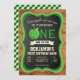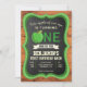 Rustic Wood Green Apple 1st First Birthday Party Invitation