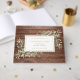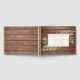 A rustic personalised celebration of life, funeral guest book featuring greenery on a wood panels background. Designed by Thisisnotme©