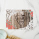 Rustic wood with white lace and heart etching and baby's breath and coral hydrangea flowers thank you card.