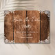 This rustic wood and lace country wedding save the date is a charming and romantic way to let your guests know about your special day. It features a wooden background with a subtle grain texture, delicate lace accents, making it perfect for a country-themed wedding or for couples wanting a warm and intimate feel. Use the design tools to update the text and the font. Also available in digital download.