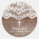 Wood with a beautiful vintage lace First Holy Communion sticker or envelope seal