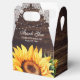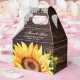 Put your bridal shower/wedding gifts into these romantic rustic floral favour boxes featuring a sunflower on a rustic wood background adorned with white floral lace and string lights.