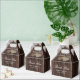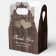 Put your rustic country bridal shower/wedding gifts into these rustic wedding thank you favour boxes featuring white floral lace and string lights on a barn wood background.