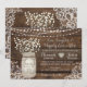 Rustic Wood and Lace Country Wedding Invitation with mason jar and string of lights.