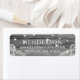A simple rustic black & white wedding address label featuring string lights and lace overlaying a wood background. Message me if you need assistance or have any special requests.