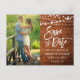 Modern Brush Script, Rustic Wood, String Lights Save The Date Engagement Couple Photo Postcard