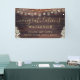 Graduation banner with a rustic, country wood background featuring string lights, mason jar lights and party lantern lights to congratulate your graduate in a modern chic typography title and personalised with their name, class year and school in brown, gold and ivory colours. Contact the designer via Zazzle Chat or makeitaboutyoustore@gmail.com if you'd like this design modified, on another product or coordinating items.