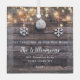 Rustic Wood Lights Stars Housewarming New Address Glass Ornament with with a wood background, snowflakes, primitive stars and fairy lights features "1st Christmas in Our New Home", Family Name, address and year. Makes a lovely housewarming, wedding or Christmas gift! Ornament is part of a collection.
