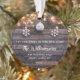 Rustic Christmas Ornament with a wood background, snowflakes, primitive stars and fairy lights features "1st Christmas in Our New Home", Family Name, address and year. Makes a lovely housewarming gift!