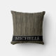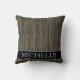 This pillow design features a rustic pattern with a brown wood like appearance. It also features a customised name.