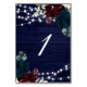 Rustic Wood Marsala & Navy Blue Flowers Table Number