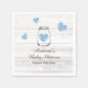 Rustic wood mason jar boy's baby shower party Napkins. Custom design with white wood grain panel and little faded hearts in light pastel blue colour. Elegant script typography with cute love symbols and rustic mason jar drawing. Trendy country chic style designs for celebrations with newborn child. Part of matching collection suite including gorgeous envelopes and very pretty decorations.