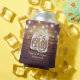 Wedding Shower Can Cooler / koozies Templates - Elegant Mason Jars and String Lights on Rustic Wood Background.