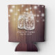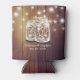 Wedding Shower Can Cooler / koozies Templates - Elegant Mason Jars and String Lights on Rustic Wood Background.