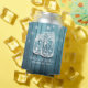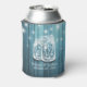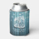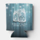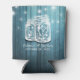 Wedding Shower Can Cooler / koozies Templates - Elegant Mason Jars and String Lights on Rustic Teal Colour Wood Background.