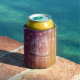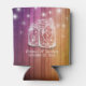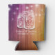 Wedding Shower Can Cooler / koozies Templates - Elegant Mason Jars and String Lights on Rustic Colourful Wood Background.