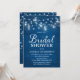 Rustic Bridal Shower invitation featuring lights in mason jars and strings of lights with the word "Bridal Shower" against a blue wood pattern background. It's the perfect card for a rustic or country bridal shower. Card includes a back side featuring strings of lights against a blue wood pattern background. Check out matching items like stickers and stamps here https://www.zazzle.com/collections/rustic_wood_mason_jars_and_lights-119202204970019494?rf=238364477188679314