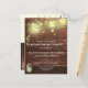 Rustic country wedding wood mason jar string of lights tree branch with green leaves wedding engagement party invitation postcard. The glowing string of lights illuminate the green leaves against a beautiful rustic dark brown wood. This rustic wedding design is customisable and perfect for your beautiful outdoor country wedding or western wedding.