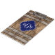 A country rustic look wood pattern with a rusted metal band: Customise the navy blue quatrefoil label with a three initial monogram or change the design to add your name or other text. You can also change the font, adjust font sizes and font colours, add additional text fields, etc.