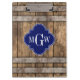 Rustic Wood Metal Band Navy Quatrefoil 3 Monogram Clipboard
