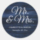Rustic Wood Navy Blue Mr and Mrs Wedding Classic Round Sticker