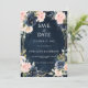 Dark navy blue floral geometric wedding save the date card featuring elegant bouquet of navy blue, royal blue , white , blush rose and sage green eucalyptus leaves and elegant glitter geometric neutral frame. Please contact me for any help in customisation or if you need any other product with this design.