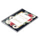 Rustic Navy Barn Wood Elegant Red and Gold Floral White Wedding Guestbook. Design Features Red Flowers, Anemone and White Flowers with Greenery Elegant Rustic Gold Frame