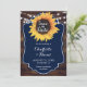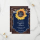 Rustic navy wedding save the date card featuring a sunflower on a rustic wood background. 100% customizable design.