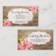 Rustic Wood & Painted Pink Hibiscus Flower Country Business Card