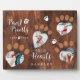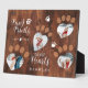 Rustic Wood Paw Prints on Our Hearts Photo Memory Plaque