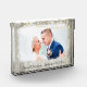 This wood photo block makes a perfect keepsake to always remember your special day. The rustic wood background is decorated with string lights on the top, and is great for rustic beach weddings or any rustic outdoor wedding themes.