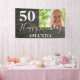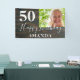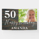 Rustic Wood Photo 50th Birthday Party Banner. Great sign for the 50th birthday party with a custom photo, text in trendy script with a name. The background is dark wood texture and the text is in white colour. Personalise the banner with your photo, your name and the age and make your own birthday party banner.