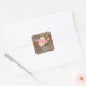 Pretty baby shower favour seal featuring a watercolor pink & purple flowers set on a rustic wood background